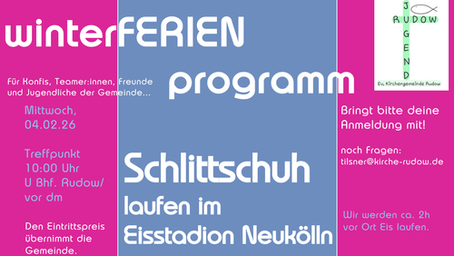 Hey du, in den Winterferien werden wir Schlittschuh laufen gehen? Du bist zw. 14J. und 18 J.? Dann komm gerne mit.
